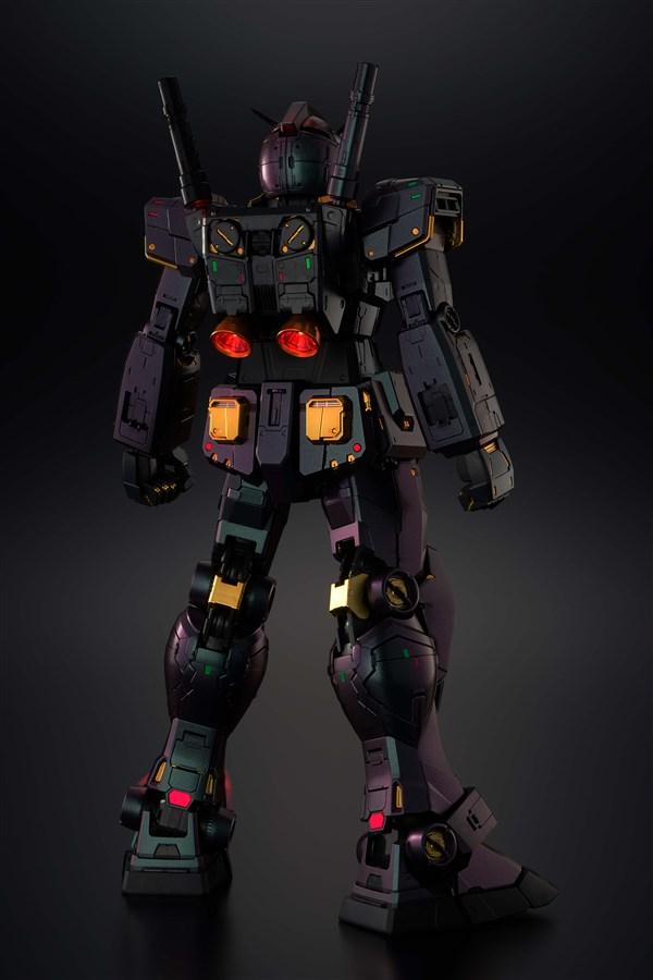 Finally an LED beam saber and a color changing LED is present in the head and chest to display the Gundam in various states of combat or maintenance. A magnet system, the first ever in GunPla supports the massive shield on to the arm while numerous maintenance hatches all over the RX-78-2 can be opened to showcase the highly detailed internal mechanisms. LED lights require Lr41 batteries (sold separately).