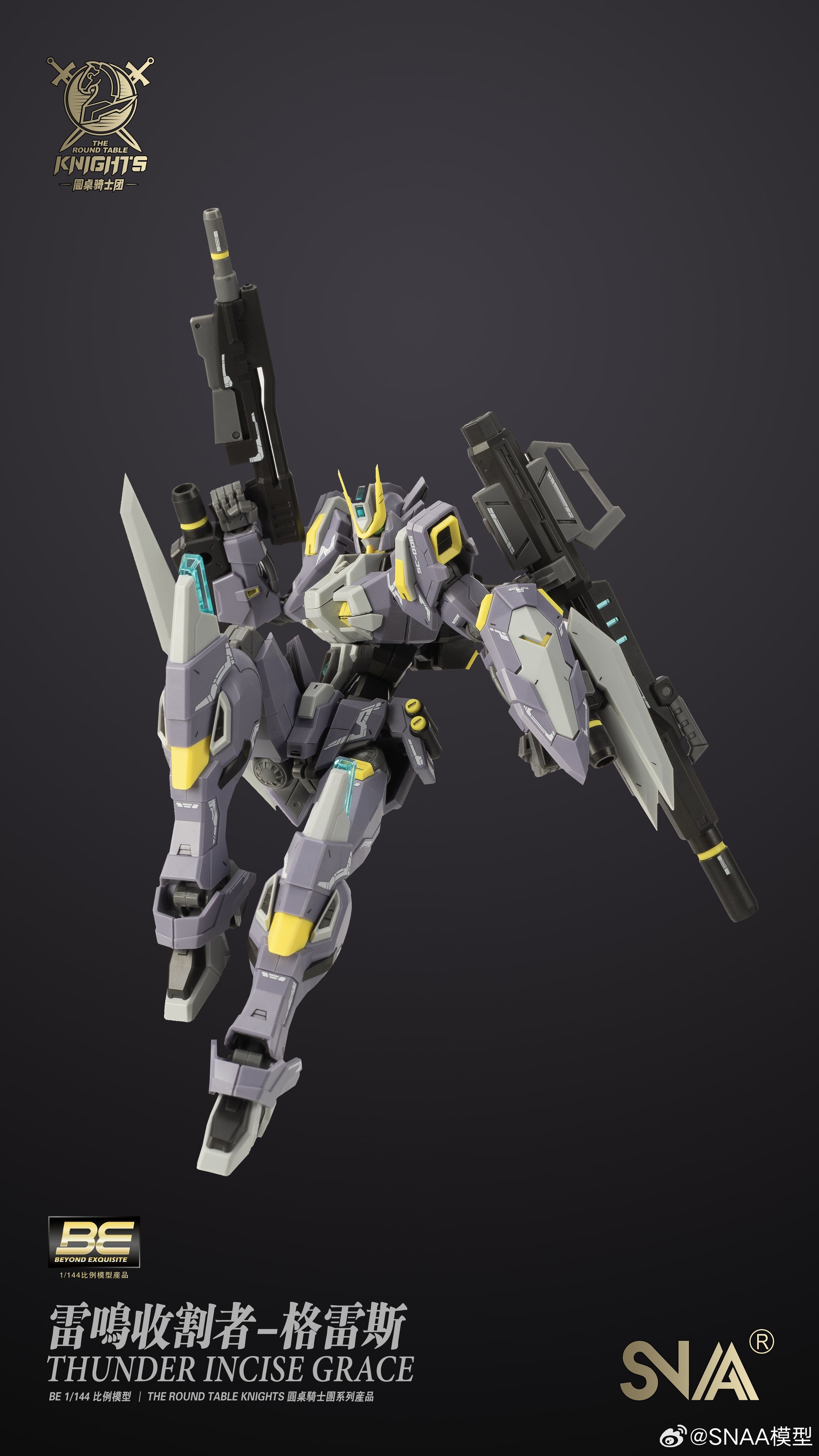Add to your model kit collection with The Round Table Knights Beyond Exquisite Thunder Incise Grace 1/144 scale model kit by SNAA. This impressive model kit is highly articulated once built and includes various weapons to prepare your model for battle. Be sure to add this model kit to your collection!